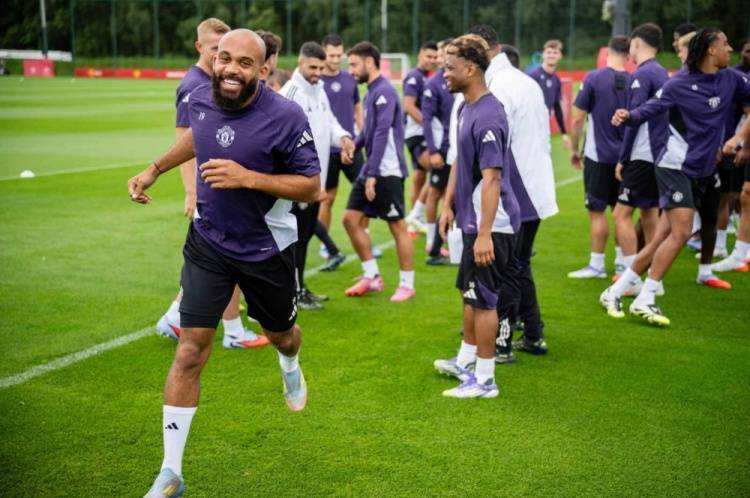 达洛特是第一个来到球场的球员,身穿19号球衣的新援姆贝莫登场,随后阿莫林召集全队欢迎这位新成员,并带领大家鼓掌欢迎姆贝莫加入球队。尽管最近两周阳光明媚,但这次训练却伴随着间歇性的阵雨,天气变得凉爽许多。
